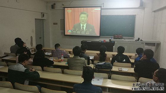 中国共产党十九大开幕会于10月18日上午9时在北京人民大会堂举行。习近平总书记代表第十八届中央委员会向大会作报告。北京科技大学土硕1705党支部对十九大的召开高度关注,18日晚七点半于土资楼302组织观看了十九大开幕会报告,党支部全体成员认真聆听和学习了习近平总书记代表十八届中央委员会向大会所作的报告。