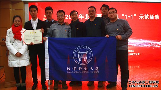 12月21日下午,2016年北京高校红色“1+1”示范活动展示评选会在北京化工大学举行。我校土木与资源工程学院土本151党支部从北京高校1000余个学生党支部中脱颖而出,荣获北京市高校红色“1+1”示范活动一等奖。北京市委组织部、市委宣传部、市委教育工委、市委农村工委、市委社会工委等相关部门领导出席评审会并担任评委。我校学生工作部副部长史立伟、土木与资源工程学院党委副书记