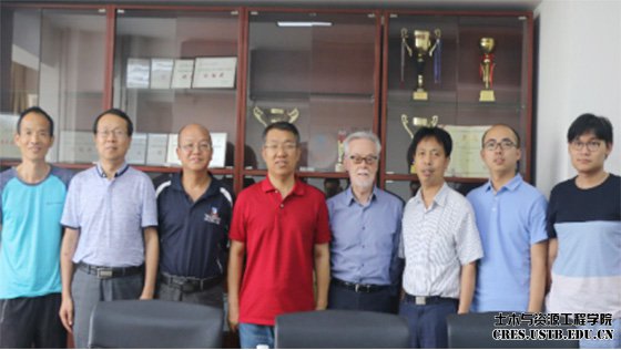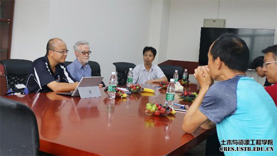 2018年07月10日下午,阿德莱德大学(The University of ADELAIDE)土木、环境和采矿工程学院 (School of Civil, Environmental and Mining Engineering)Peter Dowd教授/院士(澳大利亚技术与科学工程院院士,英国皇家工程院院士)和Chaoshui Xu教授,应吕文生副教授邀请,在土木与资源工程学院214教室就本科生培养和项目交流合作前景等问题进行了沟通。土木与资源工程学院副院长宋卫东教授、长江学者吴顺川教授、毛市龙副教授、付建新副教授、曹帅博士出席此次座谈会。