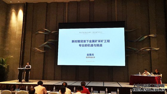 会上,各大高校对新工科建设、双一流建设、采矿工程的专业核心课程建设进行了详细的介绍与讨论。北京科技大学资源工程系主任金爱兵教授做了《新时期背景下金属矿采矿工程专业的机遇与挑战》的报告,向全国的采矿工程同仁介绍了金属矿产资源行业概况、采矿工程专业教育现状以及面临的机遇与挑战,重点介绍了我校采矿工程专业新工科建设的思路和实践。